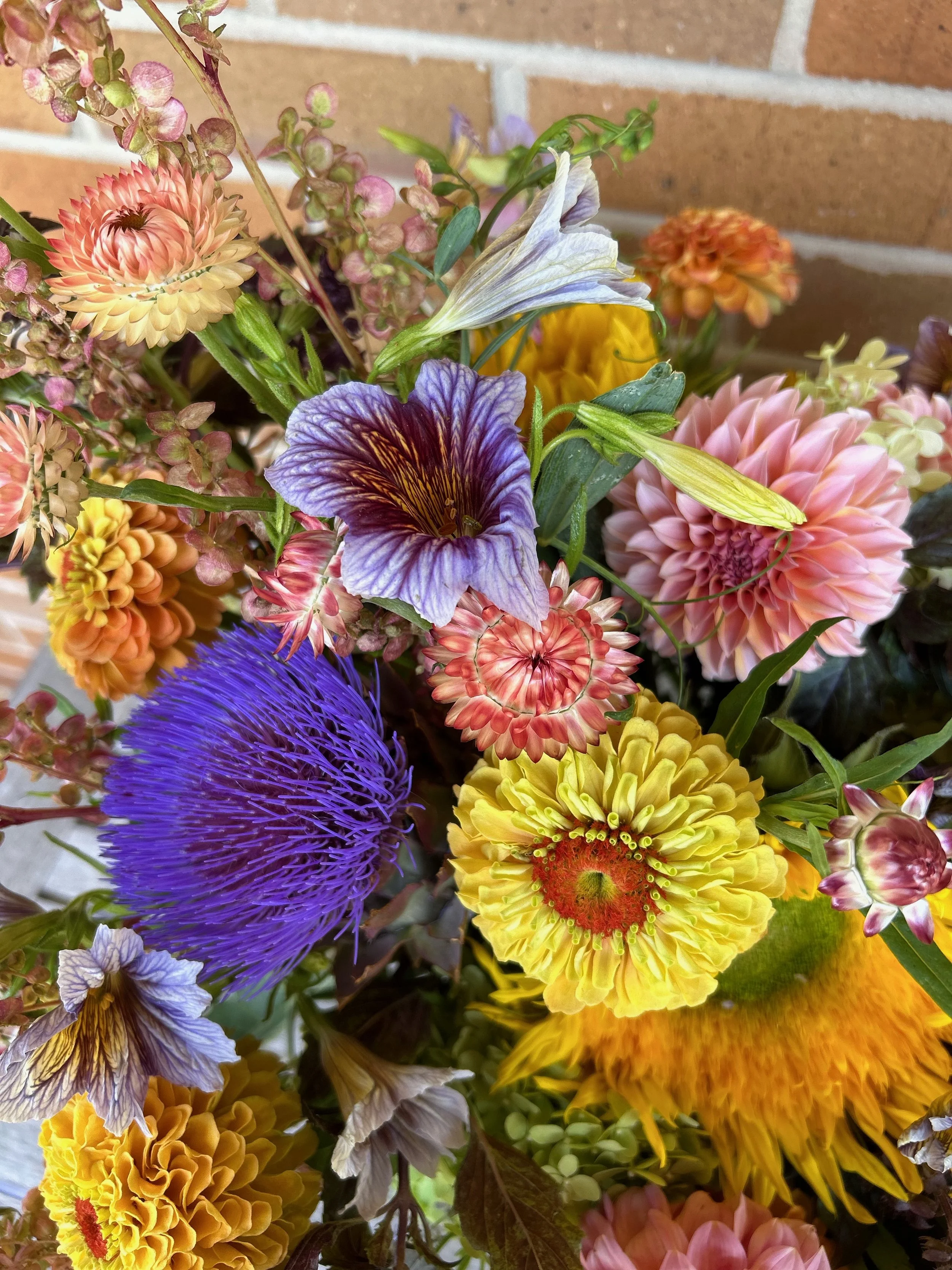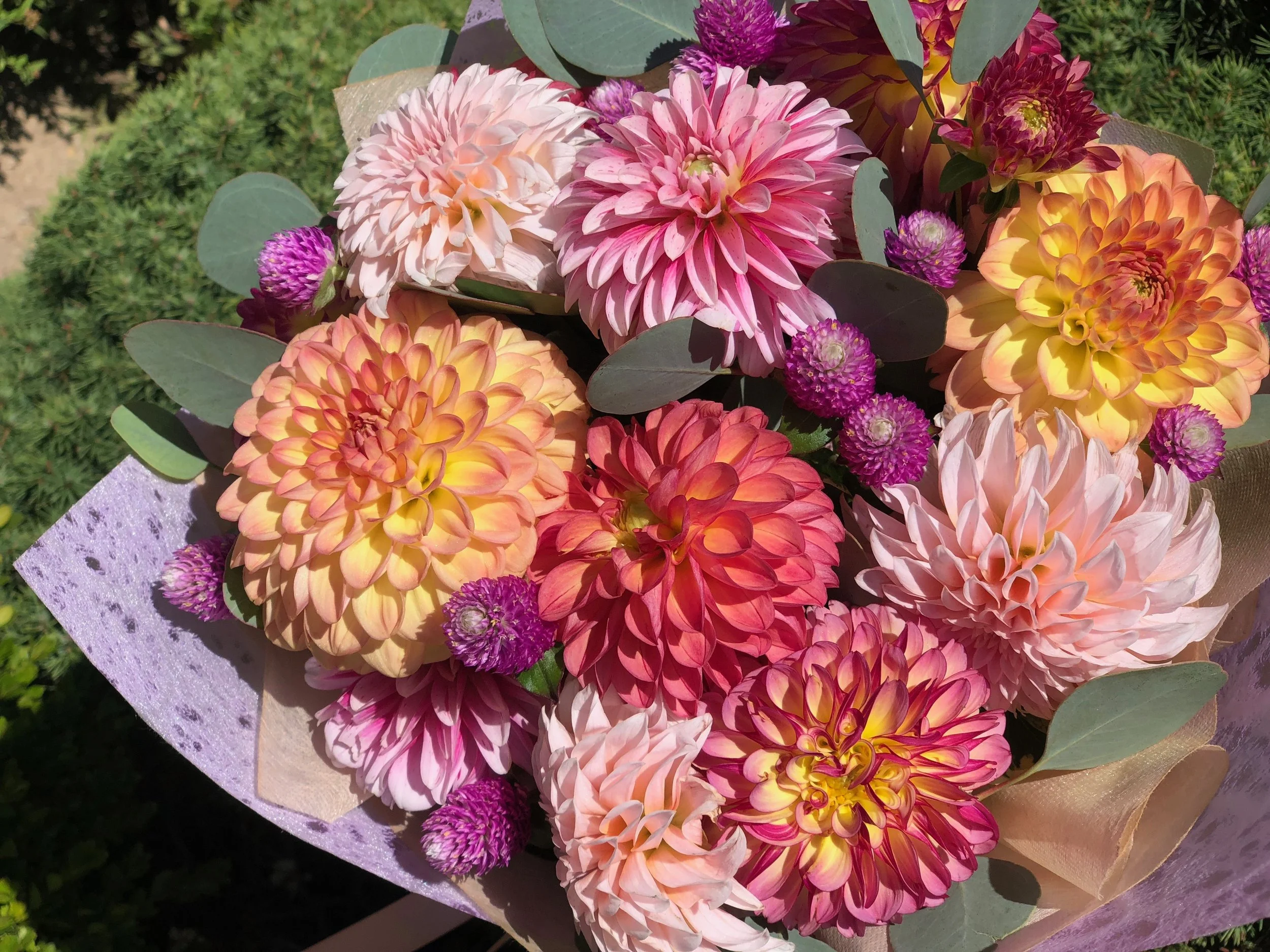 Categories: All Fall Favorites Wraps Vases Sympathy Fresh Flowers All | Fall Favorites | Wraps | Vases | Sympathy | 100% Local Bouquet from $40.00 Banquet Beauty from $150.00 Designer's Choice Wrap from $60.00 Seasonal Soft from $60.00 Seasonal Mono-chrome from $60.00 Dozen Bud Vases $60.00 Elevated Autumn Centerpiece from $125.00 Pressed Floral Pumpkin $40.00 Summer Heat from $80.00 Sympathy Wreath $350.00 Standing Spray $300.00